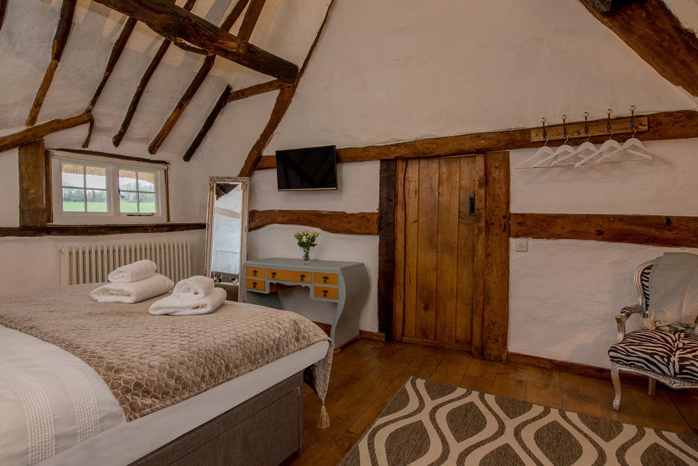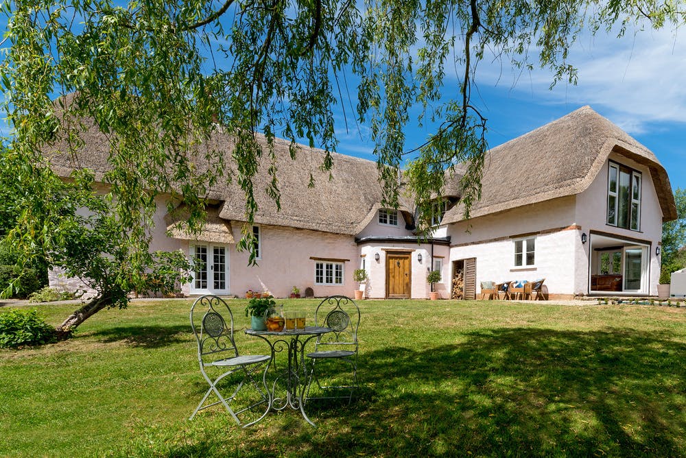 As soon as you arrive at Pink Thatch you’ll understand how it got it’s name; it’s pink and it’s thatched, simple as that. Oh, but it’s wonderful! It’s that charming old country cottage you used to see on chocolate boxes and postcards back in the day, brimming with character from the outside and even more inside. Pink Thatch dates back to the 16th century and a lot of the features from that time still remain in the older part of the cottage; just look at those big thick bumpy walls, centuries old timbers, the massive flagstones in the sitting room, and the huge open fireplace with its original bread oven. Upstairs are wide oak floorboards, soaring rafters and lots of quirky little nooks and crannies, and do you know what? It all blends seamlessly with the newer part of the house, it really works and it’s Gorgeous with a big fat capital G.